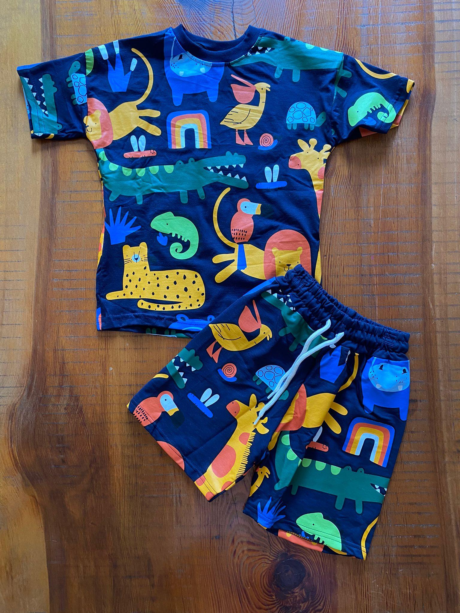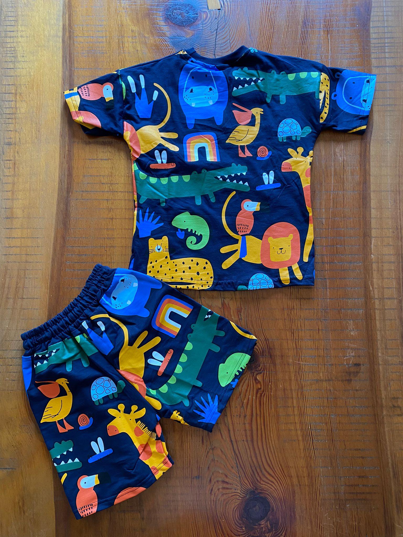 HAYVANAT BAHÇESİ 2 Lİ TAKIM; yaz mevsiminin gelmesiyle, çocuklar için tasarlanmış eşsiz bir üründür. Bu takım, tatil ve yaz günlerinde çocukların rahatlıkla giyebileceği özel bir kombinasyon sunuyor.Takımın içeriği tamamen kaliteli malzemelerden üretilmiştir. Tişört, %100 pamuklu kumaştan yapılmıştır ve cildi tahriş etmeyen yumuşaklığa sahiptir. Ayrıca, kumaşın nefes alabilir özelliği sayesinde yaz aylarında çocuklarınızın terlemesine engel olur.